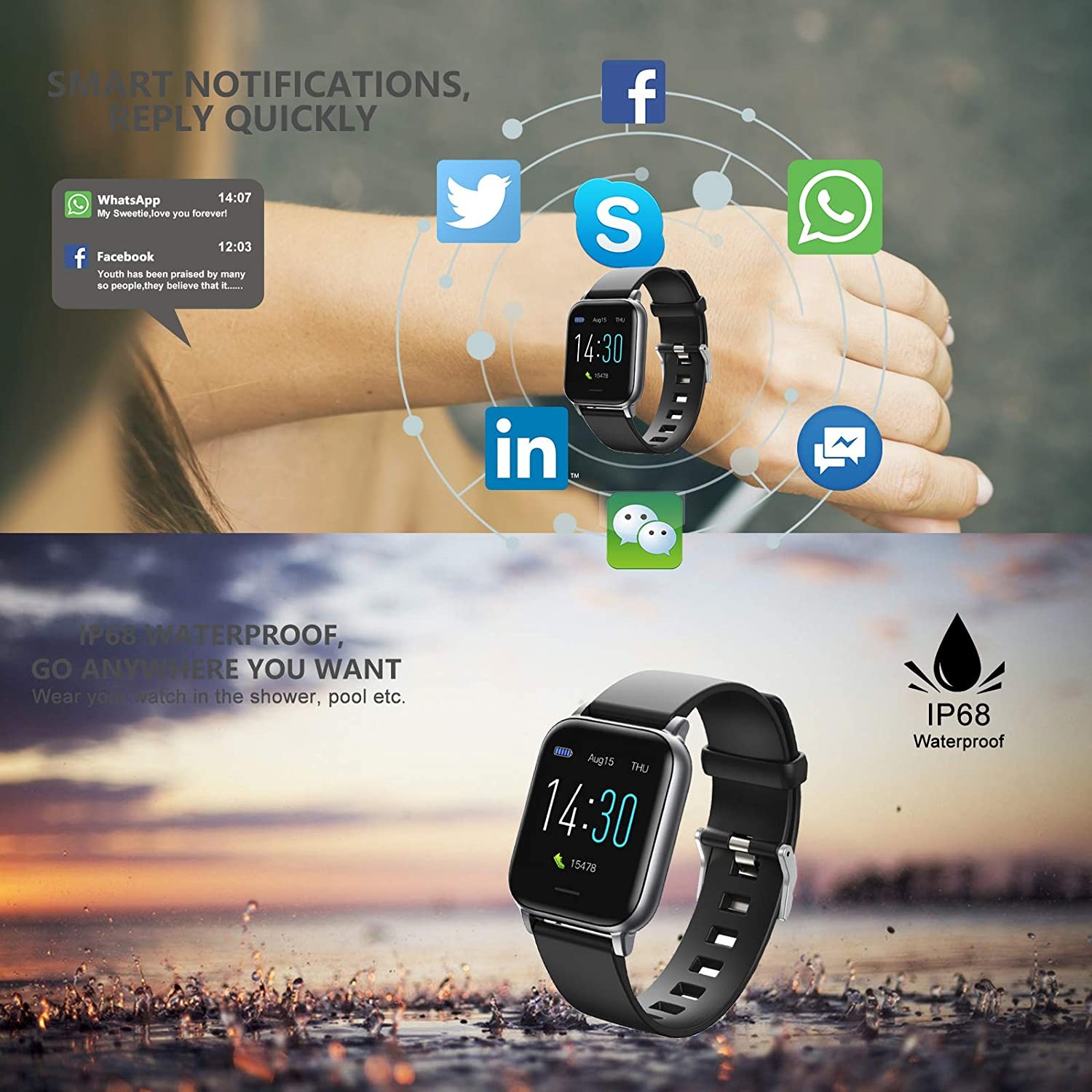 【WATERPROOF FITNESS WATCH تم تصميم الساعة الذكية بتصنيف IP68 المقاوم للماء ، وهو مقاوم للماء حتى 2 متر ، حتى تتمكن من ارتداء ساعتك في الحمام والمسبح وما بعده. لقد وعدنا بتقديم أفضل حزام لياقة بدنية لعملائنا. إذا كان لديك أي أسئلة أو مشاكل ، فلا تتردد في التواصل مع فريق دعم ما بعد البيع. سنقوم بالرد عليك في أي وقت!