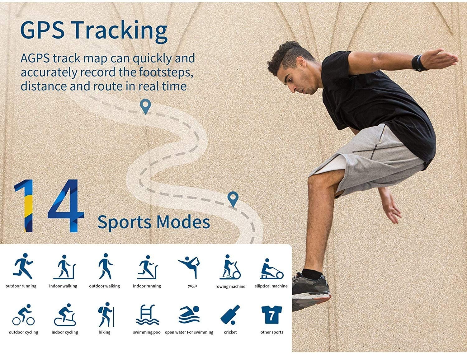 ؟ 【GPS مدمج و 14 وضعًا رياضيًا】 تحتوي الساعة الذكية على نظام تحديد المواقع العالمي (GPS) ، والذي يمكنه عرض خريطة مسار GPS للجري أو ركوب الدراجات على الساعة مباشرة ، والتخلص من قيود الهواتف المحمولة. يحتوي متتبع النشاط أيضًا على 14 وضعًا رياضيًا ، والتي يمكنها التعرف تلقائيًا على المشي والجري ، وتوفير بيانات تمرين احترافية وشاملة ، مثل المسافة والسعرات الحرارية والخطوات ومعدل ضربات القلب والسرعة. هناك أيضًا أوضاع للسباحة والدوران واليوجا وأنماط تمرين أخرى للاختيار من بينها.