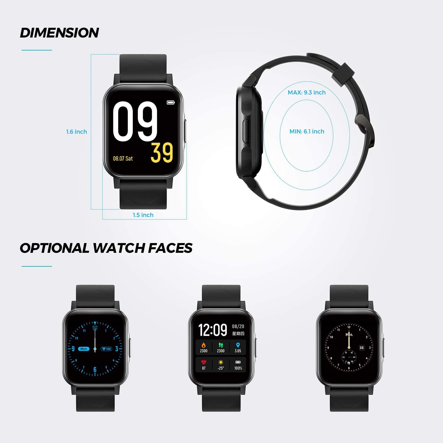 【شاشة تعمل باللمس وارتداء مريح】 هذه الساعة الذكية مزودة بشاشة ملونة تعمل باللمس مقاس 1.4 بوصة و 5 وجوه للساعة للاختيار من بينها ، مما يجعل من السهل تشغيل البيانات وقراءتها. يناسب سوار المعصم القابل للتعديل لهذه الساعة خفيفة الوزن معصمًا يتراوح بين 6.1 إلى 9.3 بوصة (محيط) ، وهو مناسب للرجال والنساء والمراهقين.